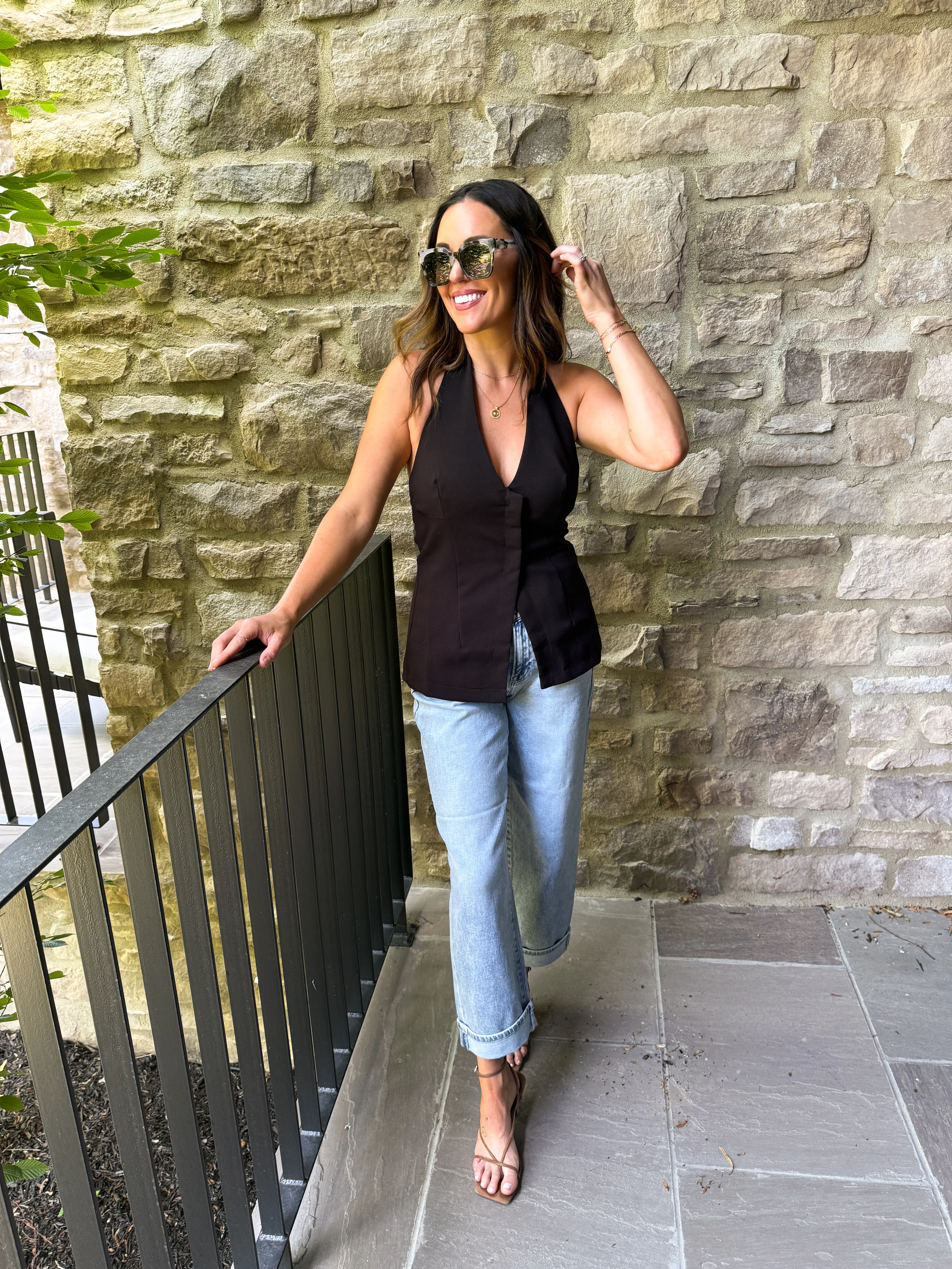 Black V-Neck Halter Top
