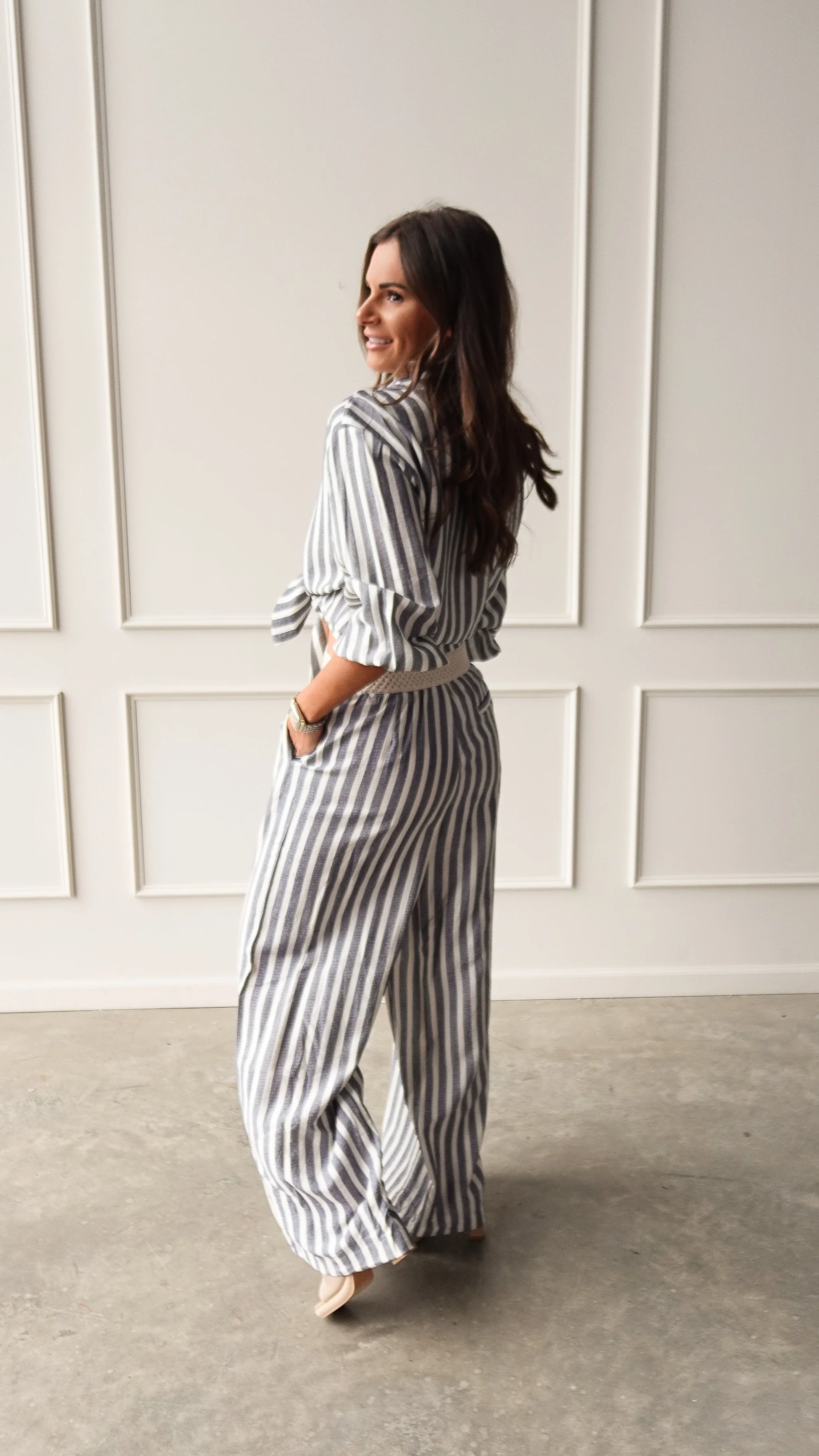 The matching piece you’ll want to live in. The Chambray Striped Elastic Waist Pant is lightweight, breezy, and made for warm days when you still want to look styled (without sacrificing comfort).