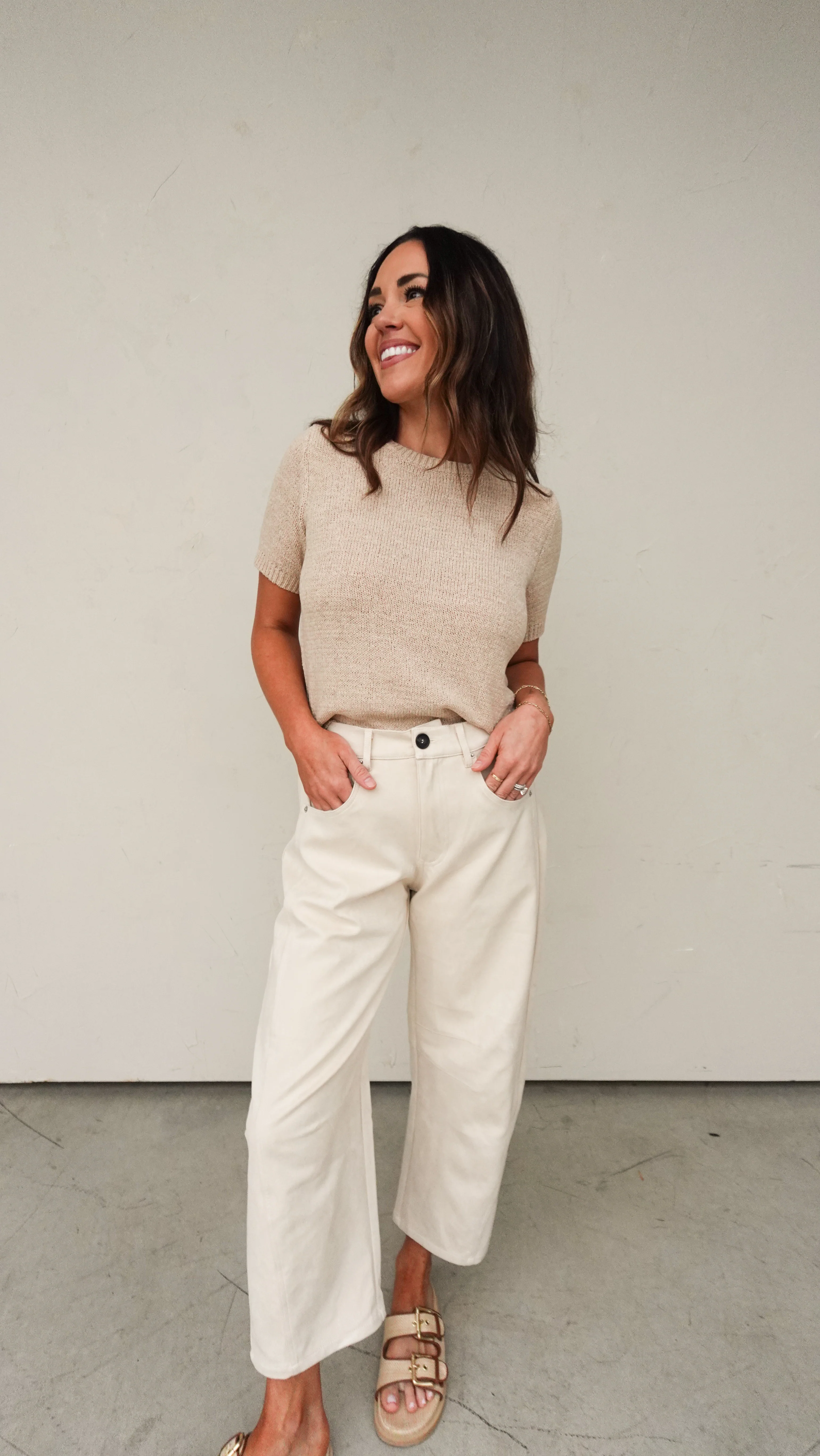 Cream Suede Relaxed Pants